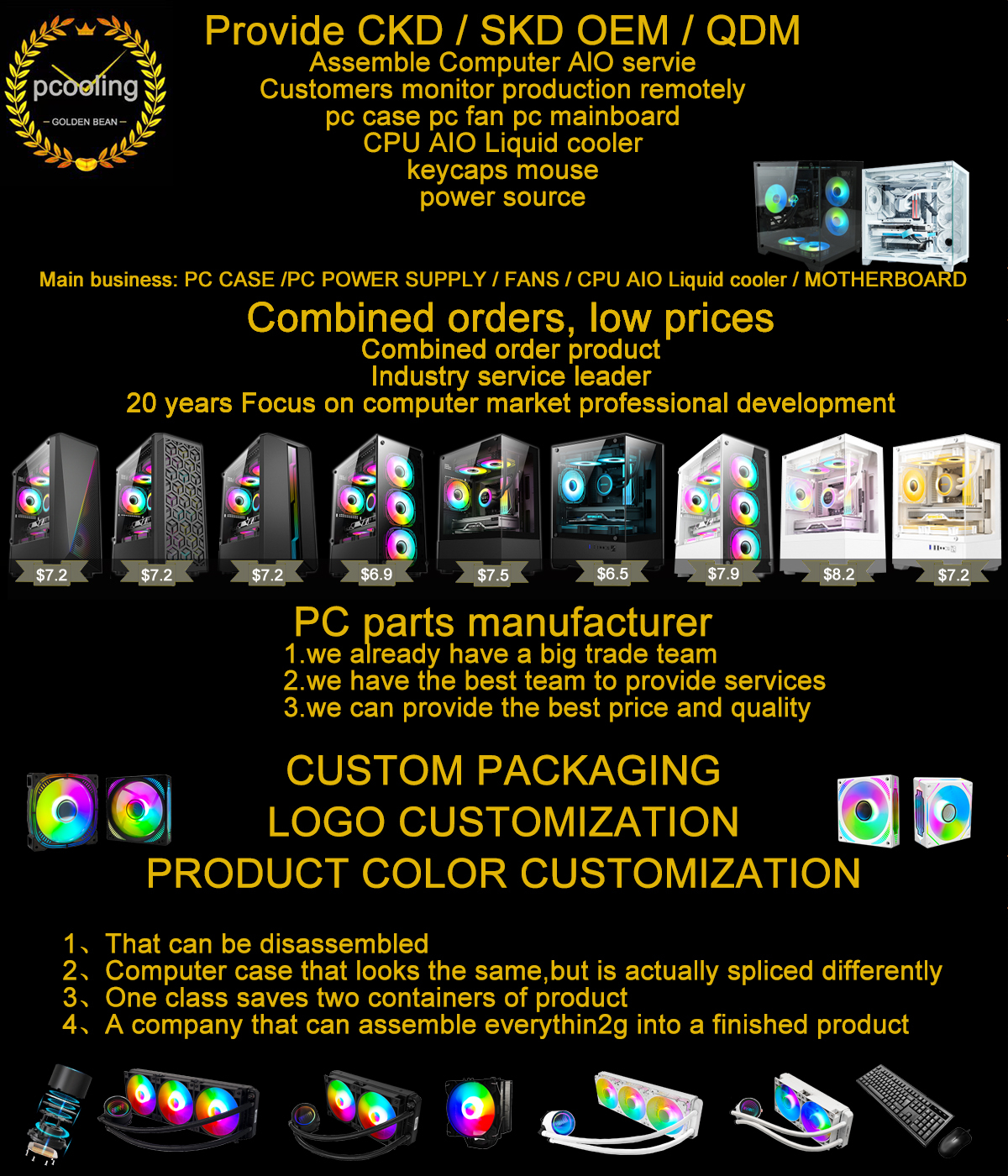 Pcooling fabrika satmak doğrudan özel Pc durumda orta kule Pc oyun kasası Rgb hayranları ile Pc kabine oyun bilgisayarı kılıfları & kuleleri